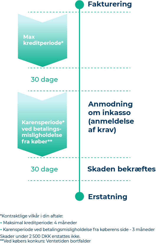 - If Hvis dine kunder ikke betaler rettidigt, sikrer vores inkassoservice, at de fleste af dine ubetalte fakturaer bliver inddrivet. Alternativt vil vi ersatte dig i henhold til policens betingelser og inden for en kort tidsramme.