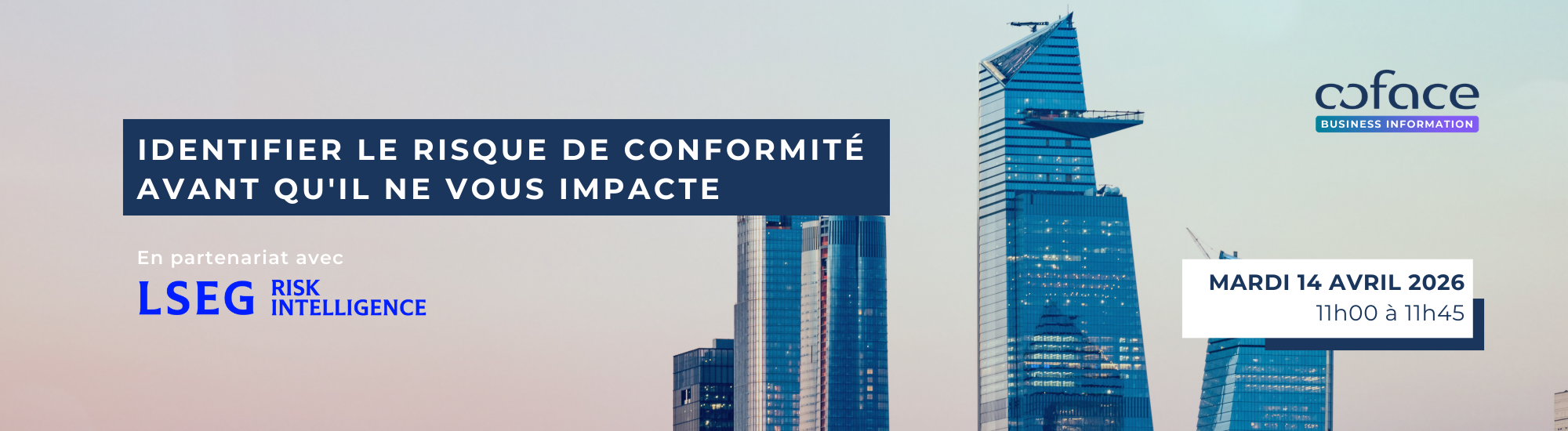 Compagnie Française d'Assurance pour le Commerce Extérieur. S.A. au capital de 137.052.417,05 EUR - RCS NANTERRE 552069791 - 1, Place Costes et Bellonte - 92279 Bois-Colombes Cedex - France. Référence mondiale de l’économie, de l’assurance-crédit et de la gestion des risques, le groupe Coface construit son réseau international depuis 75 ans, renforçant son expérience pour devenir l’acteur le plus agile dans son domaine. Coface apporte aujourd’hui des solutions dynamiques à plus de 50 000 clients dans le monde grâce à des milliers d’experts répartis dans 200 pays.